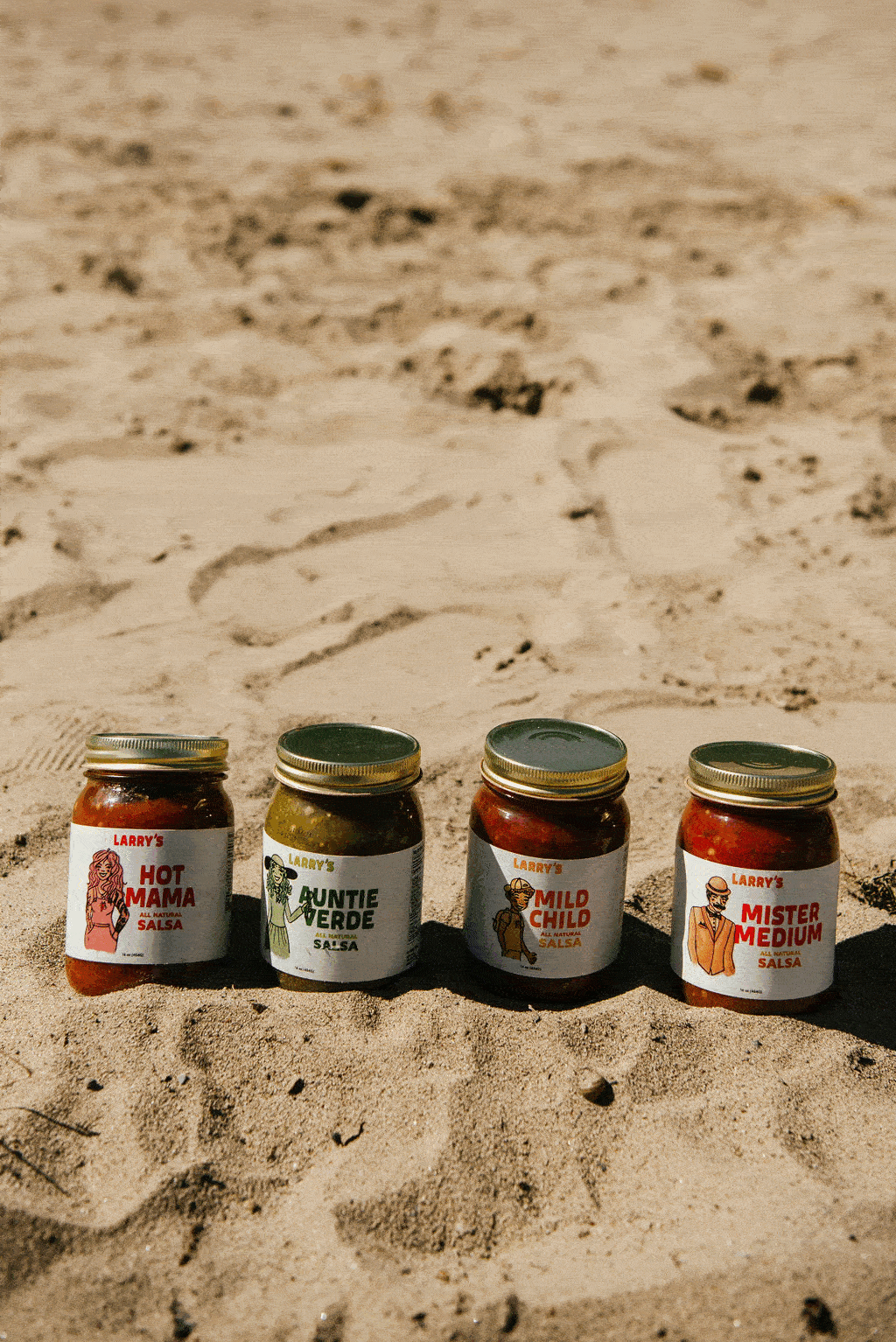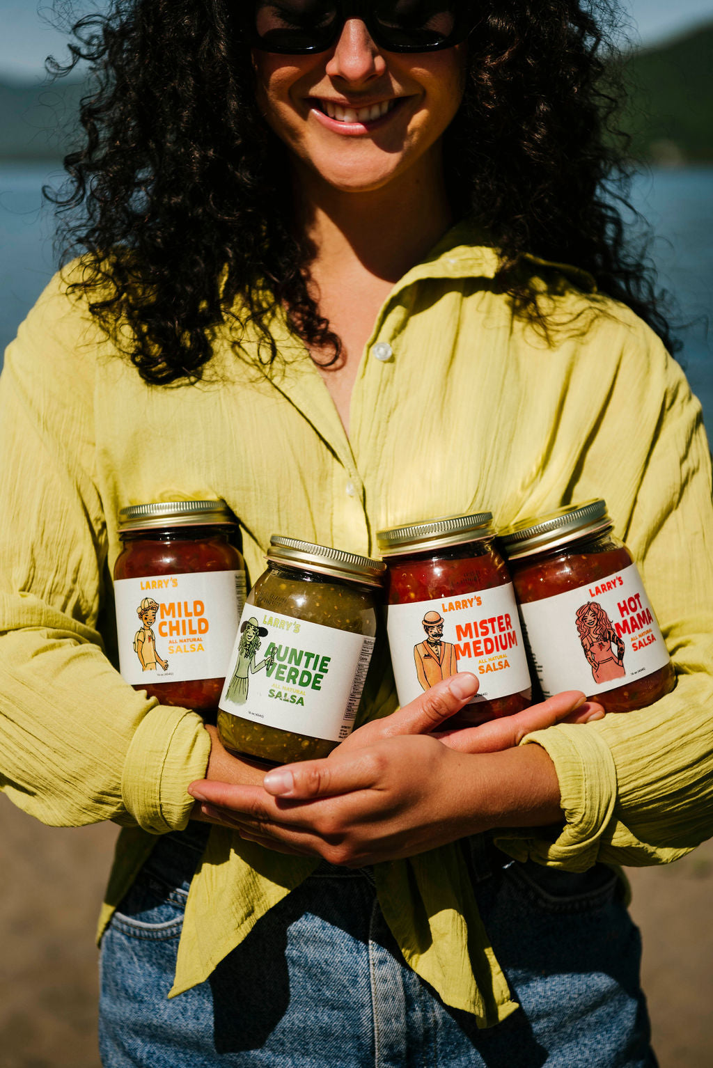 Meet Larry's family of all-natural salsas: Say hello to Auntie Verde, spice it up with Hot Mama, keep it cool with Mild Child, and find your perfect match with Mister Medium!